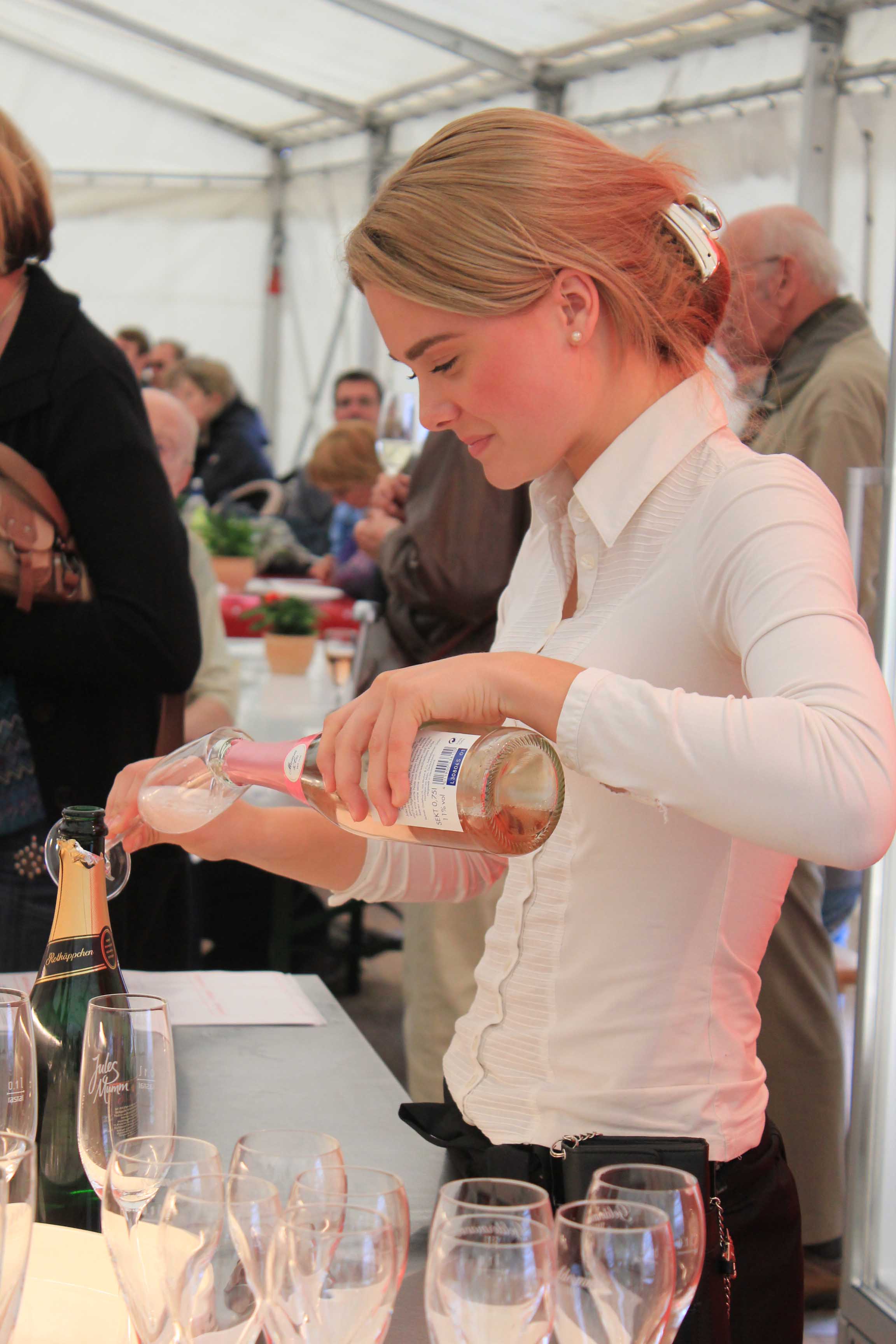 Wieder war das Event-Team von omnia concepts vor Ort, um den Sekttag organisatorisch zu unterstützen. An den Sektständen schenkten jeweils zwei Hostessen die verschiedenen Sekte der Rotkäppchen-Mumm Sektkellereien aus, während zwei weitere Hostessen den Teilnehmern der Kellerei-Führungen ein Glas MM Extra Sekt zum Probieren reichten.